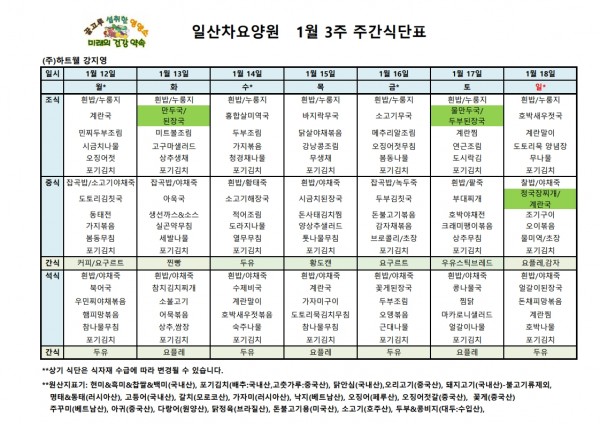 일산차요양원 26년 1월3주 식단표 페이지 정보 작성자 최고관리자 댓글 댓글 0건 조회Hit 25회 작성일Date 26-02-20 14:39 본문 일산차요양원 26년 1월3주 식단표 목록 이전글일산차요양원 26년 1월4주 식단표 26.02.20 다음글일산차요양원 26년 1월3주 식단표 26.02.20 댓글 0 댓글목록 등록된 댓글이 없습니다.