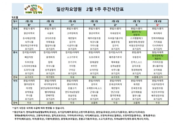 일산차요양원 26년 2월1주 식단표 페이지 정보 작성자 최고관리자 댓글 댓글 0건 조회Hit 28회 작성일Date 26-02-20 14:52 본문 일산차요양원 26년 2월1주 식단표 목록 이전글일산차요양원 26년 2월2주 식단표 26.02.20 다음글일산차요양원 26년 1월5주 식단표 26.02.20 댓글 0 댓글목록 등록된 댓글이 없습니다.