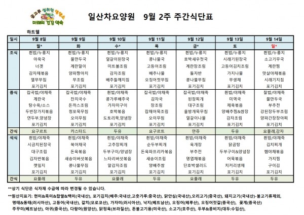일산차요양원 25년9월2주 식단표 페이지 정보 작성자 최고관리자 댓글 댓글 0건 조회Hit 152회 작성일Date 25-10-02 14:25 본문 일산차요양원 25년9월2주 식단표 목록 이전글일산차요양원 25년9월3주 식단표 25.10.02 다음글일산차요양원 25년9월1주 식단표 25.10.02 댓글 0 댓글목록 등록된 댓글이 없습니다.