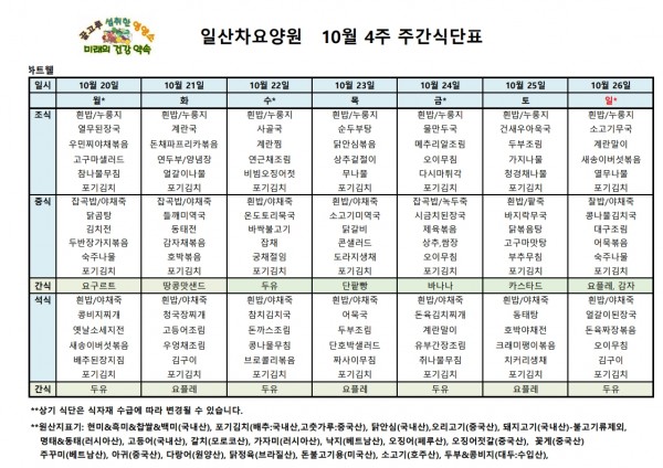 일산차요양원 25년10월4주 식단표 페이지 정보 작성자 최고관리자 댓글 댓글 0건 조회Hit 202회 작성일Date 25-11-11 11:37 본문 일산차요양원 25년10월4주 식단표 목록 이전글일산차요양원 25년10월5주 식단표 25.11.11 다음글일산차요양원 25년10월3주 식단표 25.11.11 댓글 0 댓글목록 등록된 댓글이 없습니다.