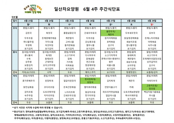 일산차요양원 25년6월4주 식단표 페이지 정보 작성자 최고관리자 댓글 댓글 0건 조회Hit 185회 작성일Date 25-07-28 17:27 본문 일산차요양원 25년6월4주 식단표 목록 이전글일산차요양원 25년7월1주 식단표 25.07.28 다음글일산차요양원 25년6월3주 식단표 25.07.28 댓글 0 댓글목록 등록된 댓글이 없습니다.