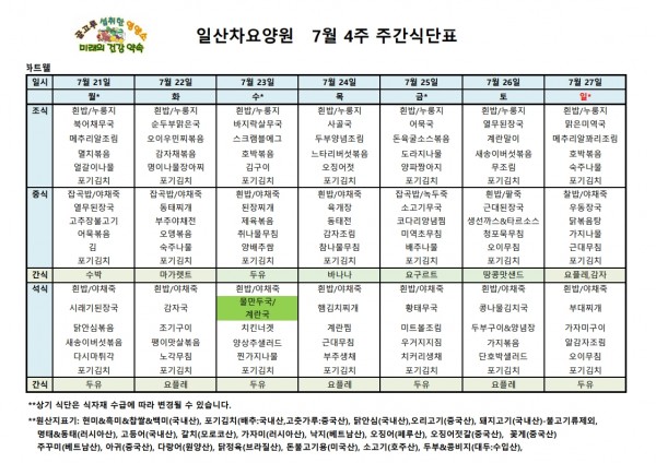 일산차요양원 25년7월4주 식단표 페이지 정보 작성자 최고관리자 댓글 댓글 0건 조회Hit 240회 작성일Date 25-07-28 17:31 본문 일산차요양원 25년7월4주 식단표 목록 이전글일산차요양원 25년7월5주 식단표 25.08.28 다음글일산차요양원 25년7월3주 식단표 25.07.28 댓글 0 댓글목록 등록된 댓글이 없습니다.