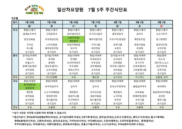 일산차요양원 25년7월5주 식단표 페이지 정보 작성자 최고관리자 댓글 댓글 0건 조회Hit 141회 작성일Date 25-08-28 10:30 본문 일산차요양원 25년7월5주 식단표 목록 이전글일산차요양원 25년8월1주 식단표 25.08.28 다음글일산차요양원 25년7월4주 식단표 25.07.28 댓글 0 댓글목록 등록된 댓글이 없습니다.
