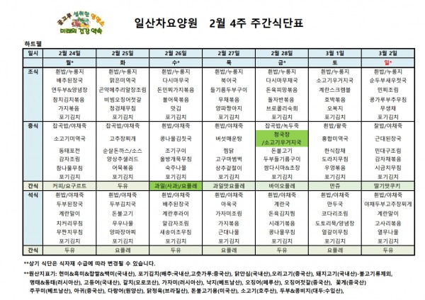 일산차요양원 25년 2월 4주 식단표 페이지 정보 작성자 최고관리자 댓글 댓글 0건 조회Hit 224회 작성일Date 25-03-18 11:10 본문 일산차요양원 25년 2월 4주 식단표 목록 이전글일산차요양원 25년 3월 1주 식단표 25.03.18 다음글일산차요양원 25년 2월 3주 식단표 25.03.18 댓글 0 댓글목록 등록된 댓글이 없습니다.