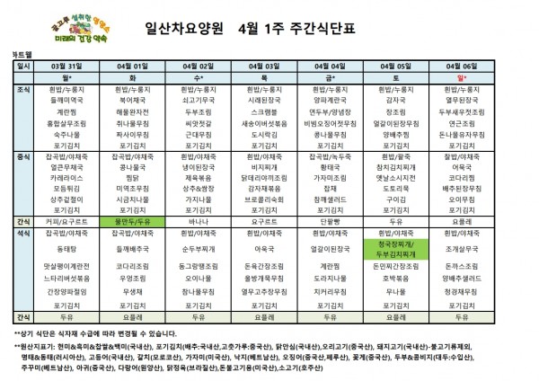 일산차요양원 25년4월1주 식단표 페이지 정보 작성자 최고관리자 댓글 댓글 0건 조회Hit 194회 작성일Date 25-06-20 17:29 본문 일산차요양원 25년4월1주 식단표 목록 이전글일산차요양원 25년4월2주 식단표 25.06.20 다음글일산차요양원 25년 3월 4주 식단표 25.06.20 댓글 0 댓글목록 등록된 댓글이 없습니다.