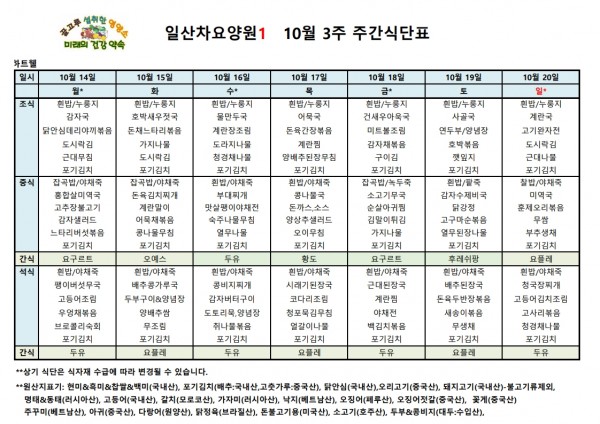 일산차요양원 24년 10월 3주 식단표 페이지 정보 작성자 최고관리자 댓글 댓글 0건 조회Hit 288회 작성일Date 24-12-16 18:20 본문 일산차요양원 24년 10월 3주 식단표 목록 이전글일산차요양원 24년 10월 4주 식단표 24.12.16 다음글일산차요양원 24년 10월 2주 식단표 24.12.16 댓글 0 댓글목록 등록된 댓글이 없습니다.