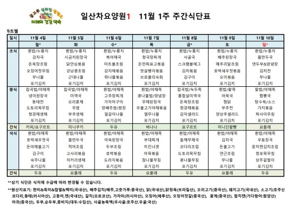 일산차요양원 24년 11월 1주 식단표 페이지 정보 작성자 최고관리자 댓글 댓글 0건 조회Hit 264회 작성일Date 24-12-16 18:22 본문 일산차요양원 24년 11월 1주 식단표 목록 이전글일산차요양원 24년 11월 2주 식단표 24.12.16 다음글일산차요양원 24년 10월 5주 식단표 24.12.16 댓글 0 댓글목록 등록된 댓글이 없습니다.