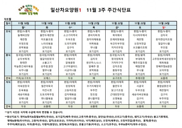 일산차요양원 24년 11월 3주 식단표 페이지 정보 작성자 최고관리자 댓글 댓글 0건 조회Hit 258회 작성일Date 24-12-16 18:23 본문 일산차요양원 24년 11월 3주 식단표 목록 이전글일산차요양원 24년 11월 4주 식단표 24.12.16 다음글일산차요양원 24년 11월 2주 식단표 24.12.16 댓글 0 댓글목록 등록된 댓글이 없습니다.
