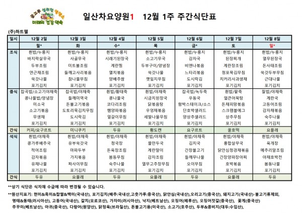 일산차요양원 24년 12월 1주 식단표 페이지 정보 작성자 최고관리자 댓글 댓글 0건 조회Hit 256회 작성일Date 24-12-16 18:28 본문 일산차요양원 24년 12월 1주 식단표 목록 이전글일산차요양원 24년 12월 2주 식단표 24.12.16 다음글일산차요양원 24년 11월 4주 식단표 24.12.16 댓글 0 댓글목록 등록된 댓글이 없습니다.