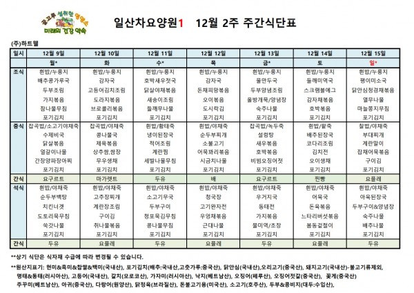 일산차요양원 24년 12월 2주 식단표 페이지 정보 작성자 최고관리자 댓글 댓글 0건 조회Hit 256회 작성일Date 24-12-16 18:28 본문 일산차요양원 24년 12월 2주 식단표 목록 이전글일산차요양원 24년 12월 3주 식단표 24.12.16 다음글일산차요양원 24년 12월 1주 식단표 24.12.16 댓글 0 댓글목록 등록된 댓글이 없습니다.