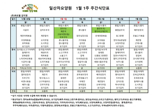 일산차요양원 25년 1월 1주 식단표 페이지 정보 작성자 최고관리자 댓글 댓글 0건 조회Hit 328회 작성일Date 25-03-18 11:03 본문 일산차요양원 25년 1월 1주 식단표 목록 이전글일산차요양원 25년 1월 2주 식단표 25.03.18 다음글일산차요양원 24년 12월 4주 식단표 25.03.18 댓글 0 댓글목록 등록된 댓글이 없습니다.