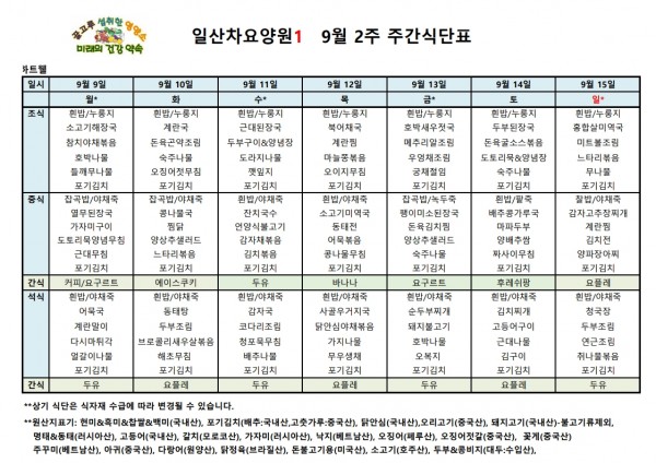 일산차요양원 24년 9월 2주 식단표 페이지 정보 작성자 최고관리자 댓글 댓글 0건 조회Hit 305회 작성일Date 24-12-16 18:18 본문 일산차요양원 24년 9월 2주 식단표 목록 이전글일산차요양원 24년 9월 3주 식단표 24.12.16 다음글일산차요양원 24년 9월 1주 식단표 24.12.16 댓글 0 댓글목록 등록된 댓글이 없습니다.