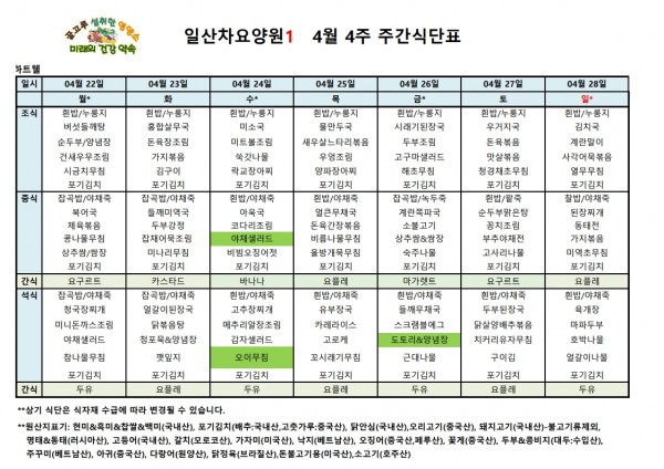 - 다음글일산차요양원 24년 4월 3주 식단표 24.12.16