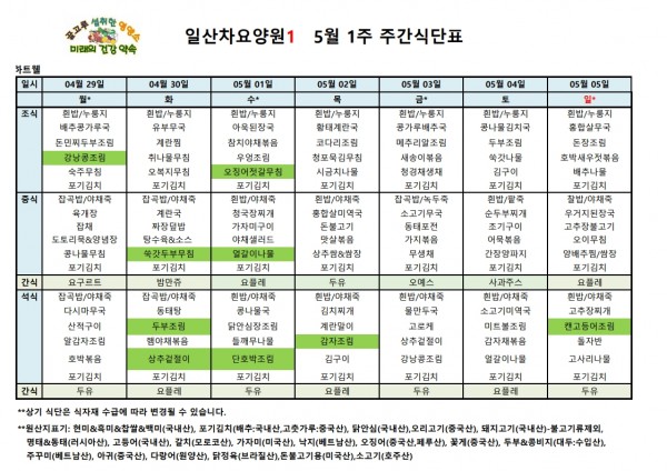 일산차요양원 24년 5월 1주 식단표 페이지 정보 작성자 최고관리자 댓글 댓글 0건 조회Hit 211회 작성일Date 24-12-16 17:41 본문 일산차요양원 24년 5월 1주 식단표 목록 이전글일산차요양원 24년 5월 2주 식단표 24.12.16 다음글일산차요양원 24년 4월 4주 식단표 24.12.16 댓글 0 댓글목록 등록된 댓글이 없습니다.
