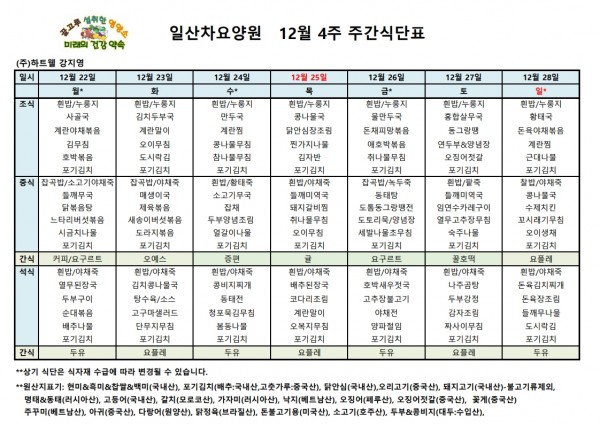 일산차요양원 25년12월4주 식단표 페이지 정보 작성자 최고관리자 댓글 댓글 0건 조회Hit 105회 작성일Date 25-12-19 17:14 본문 일산차요양원 25년12월4주 식단표 목록 이전글일산차요양원 25년12월5주 식단표 26.02.20 다음글일산차요양원 25년12월3주 식단표 25.12.19 댓글 0 댓글목록 등록된 댓글이 없습니다.