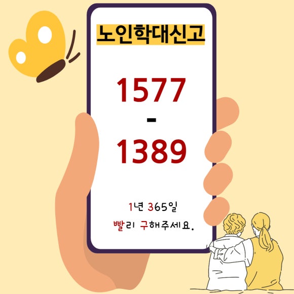 (신고방법 : 노인학대신고, 상담전화 1577-1389, 112, 노인학대 신고앱 , 나비새김(노인지킴이) 앱)